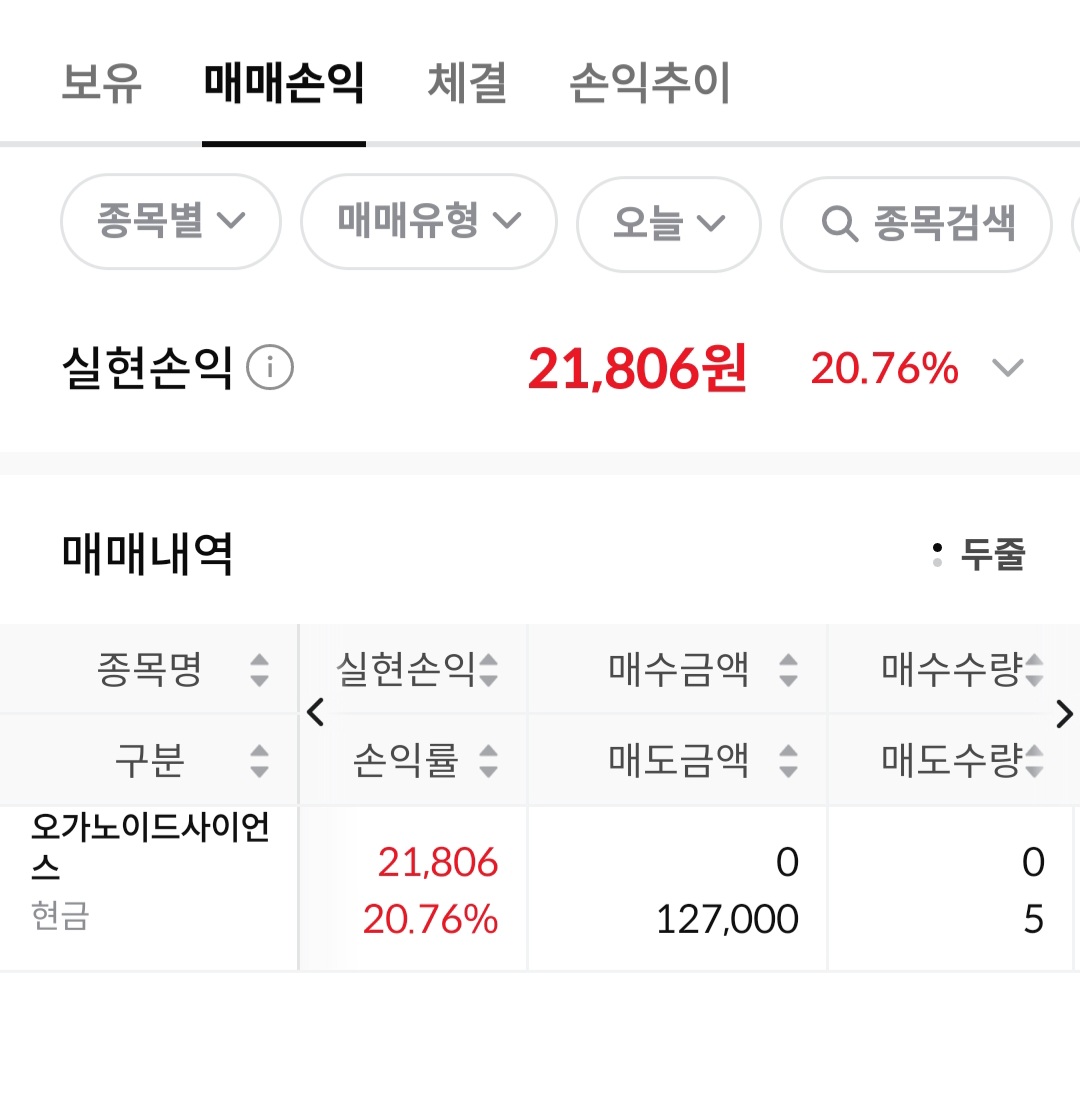 같은 날 상장한 오가노이드사이언스는 바이오 분야의 신생 기업으로, 크게 기대하지 않은 종목이라 역시 시초가 대응으로 빠르게 매도 완료 하였습니다.